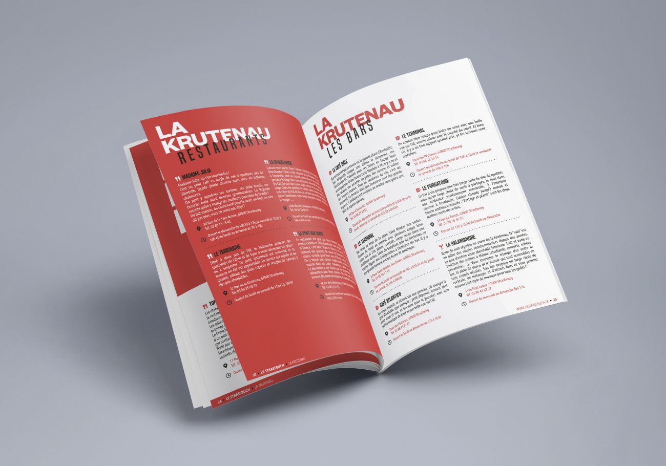 Conception graphique du Strassbuch, un guide annuel de bonnes adresses à Strasbourg en partenariat avec Optemis.